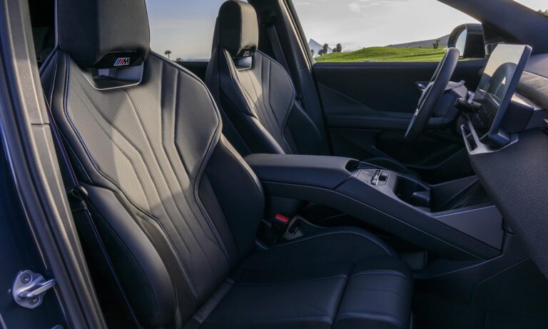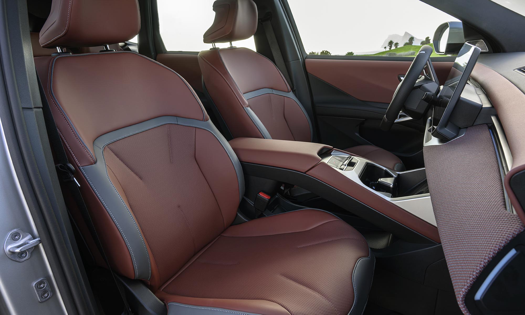 A minimalista, de meleg szövetkárpit és a rejtett hangulatvilágítás jól mutatják, hogy a BMW nem Tesla-utánérzésben gondolkodik, hanem saját útját járja: egyszerű, rendezett, kézre áll – és jó érzés benne ülni. De szokni kell a kormány különleges formáját és a haptikus gombokat.