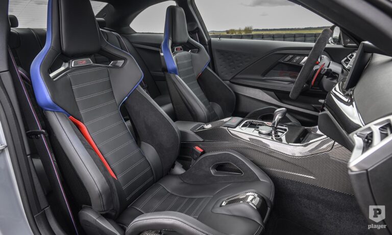 a világító CS emblémás M Carbon kagylóüléseket pedig többpontos övek beszerelésére is felkészítették,