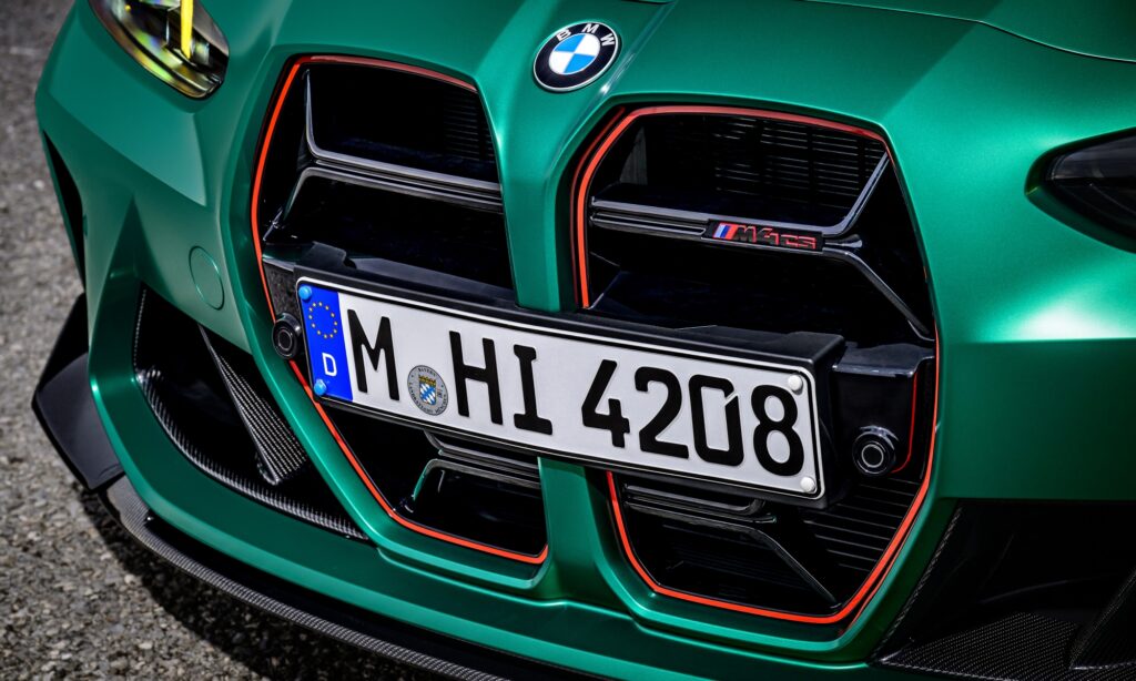 Alapból is szénszál erősítésű műanyagból készül az M4-es BMW tetőpanelje, de a CS-en a gépháztető és az első lökhárító alatti légterelő (splitter) és a tükörházak is abból készülnek. A négy kipufogóvéget (4 kilogrammal könnyebb titán kipufogódobbal) átölelő hátsó diffúzor és a csomagtérfedélen lévő szolid légterelő is karbonból készül, de még a pirossal kontúrozott hűtőmaszkon is kevesebb lamella áll a hűtőlevegő útjába.