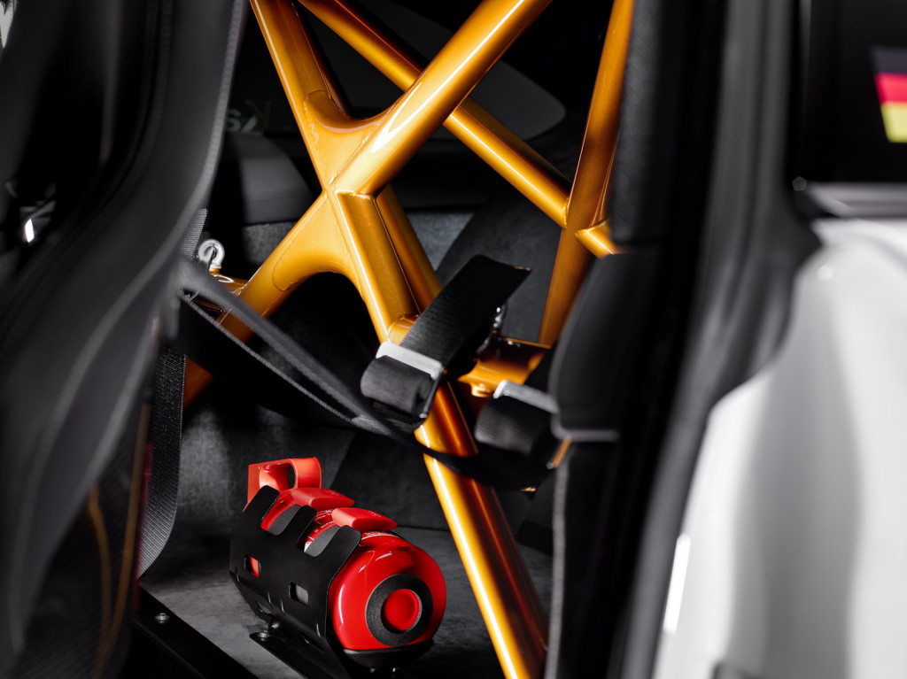 Narancssárga bukócső, tűzoltó készülék, durva sportülések – igen, ezek is szériacuccok az M4 GTS-en, pontosabban annak felár nélkül kérhető Clubsport csomagjában. A biztonsági autó szerepkörhöz csak a fényhíd, az első lökhárítóba épített LED-ek, és a LED-fényszórók villogó funkciója és a matricázás kellett.