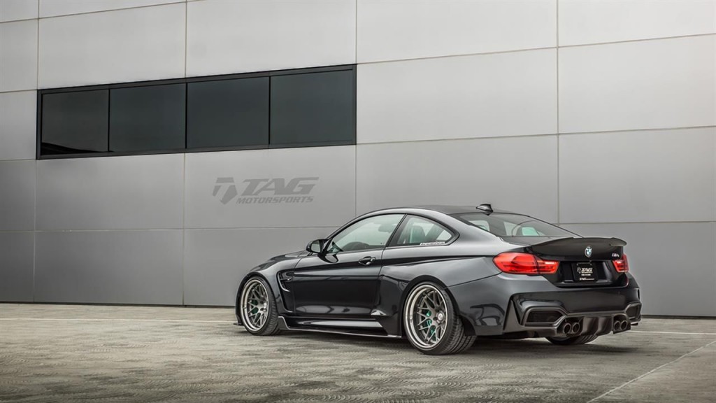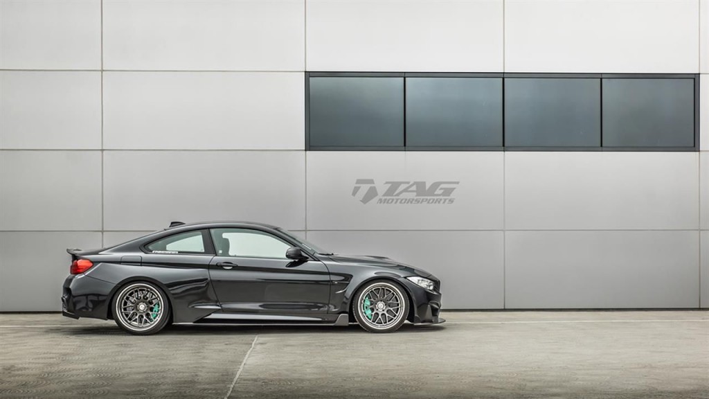 A TAG Motorsport a szuperlátványos Vorsteiner GTRS4 bodykittel szélesítette ki a BMW izomkupéját, aztán hogy ne nézzen ki nevetségesen a keskeny gumi, hátra Pirelli P Zero 345/25 R20-as gumikat tett. Az eredmény elég impozáns – és nem csak a Vosse-féle eltolt 5-öshöz képest.