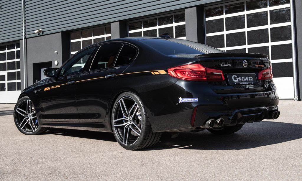 3,4 másodperces gyorsulásával és 305 km/órás végsebességével a széria M5 is szédületesen megy, ehhez képest a G-Power által tuningolt változatnak 2,9 másodperc is elég a százas sprinthez, és a végsebessége 335 km/óra felett van.