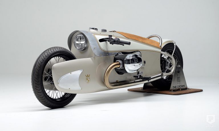 Szinte fel sem ismerhető, melyik motorkerékpár alapjára épült a The Crown, a gépészetet ugyanis szemrevaló áramvonalas burkolat borítja, amit két milliméteres alumíniumlemezből kézzel vágtak és formáztak, gyönyörű nyerge hasított bőrből szintén kézzel készült.
