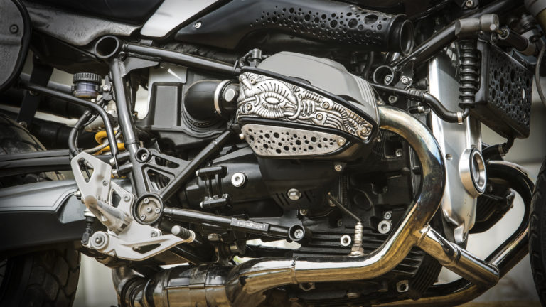 A Bckyrd Customst két balinéz srác alapította: mindkettejüknél adott volt az formatervezési tudás és a motorok imádata. Plusz ismerik a helyi útviszonyokat, így ezt a BMW R nineT-t is a rossz burkolatokhoz igazították. A karosszériaelemeket lecserélték kézzel formázott alumíniumra, a díszítésnél sok ihletet merítettek HR Giger svájci szürrealista festő műveiből.