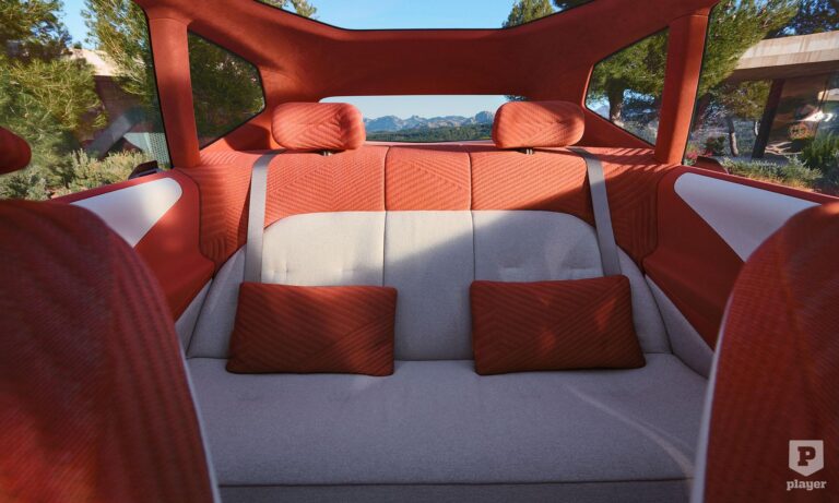 A kárpitozás egy része növényi alapú, az utastérben használt anyagoknak legalább a 30 százaléka újrahasznosított anyag, műanyag palack vagy leharcolt halászháló.