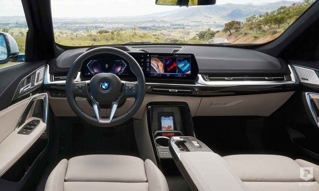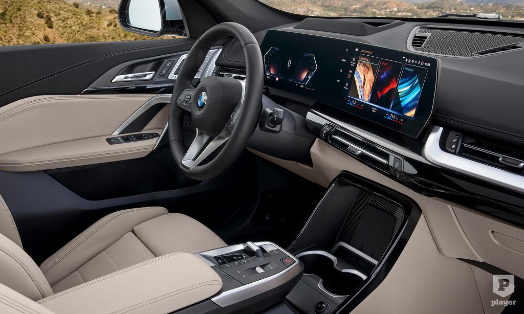 A műszaki alapokat a nemrég bemutatott 2-es Active Tourer adja, ezért nem meglepő, hogy a műszerfal szinte változatlanul került át az egyterű testvérből. Az új X1-ben is megjelent az ívelt kijelző a 10,25 colos műszeregységgel és a 10,7 colos érintőképernyővel, a BMW legújabb infotainment rendszerével.