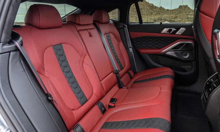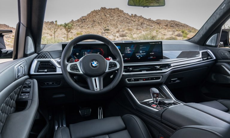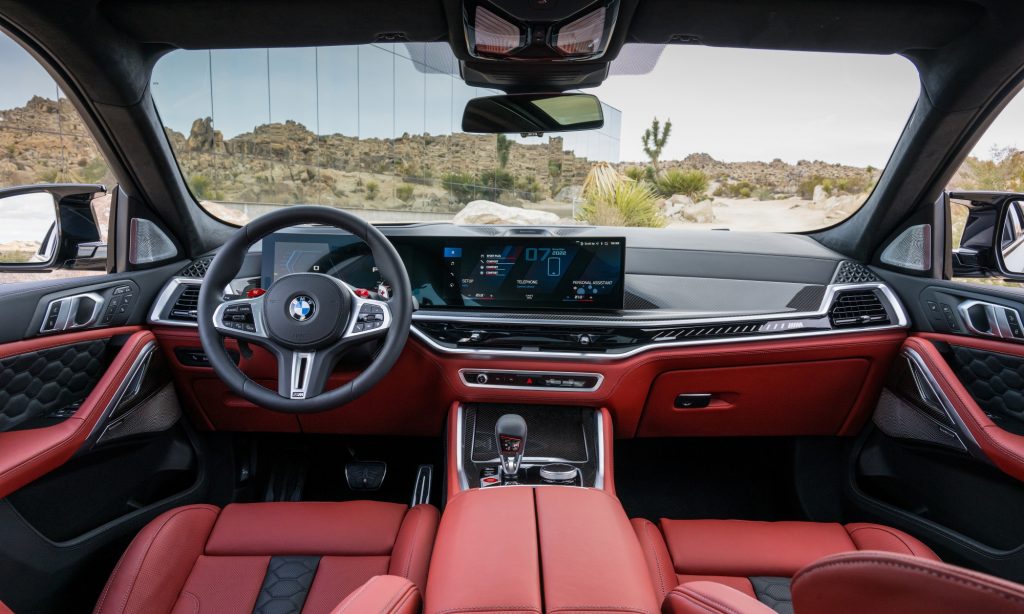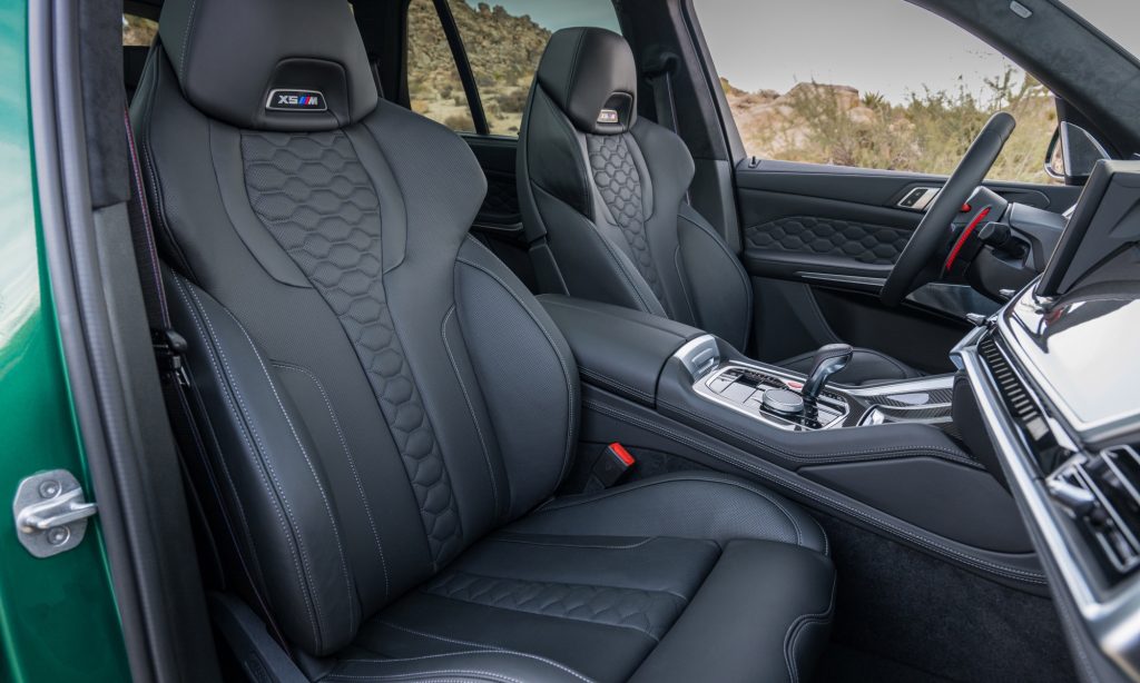 Minden hagyományos BMW M-re utaló jellegzetesség megvan a több mint 4,9 méter hosszú és 2,5 tonnás szabadidő-autókon. Ezzel együtt mindent tudnak, amit egy modern SUV-nak tudnia kell, tehát tágas utasterük van, melyben kényelmesen üldögélhet négy ember. Az üléseken túl az ajtókárpitokat és a műszerfalat is finom tapintású, minőségi bőrkárpit borítja, sportosságot hirdető méhsejtmintás varrással.