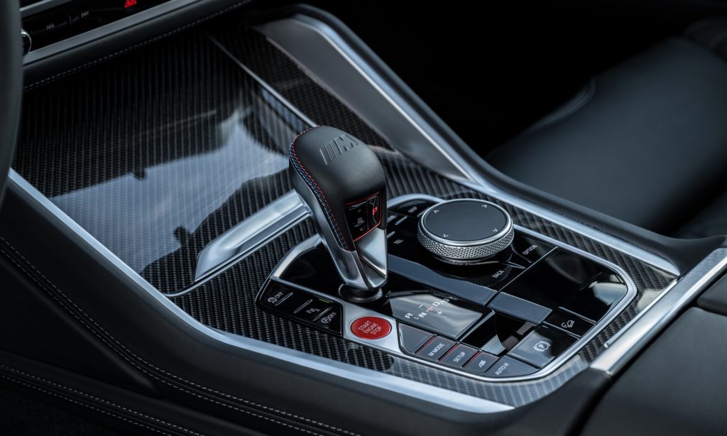 Sajnos a legtöbb új BMW-ből nemcsak a kézi váltó, de az automata karja is eltűnik lassan, szerencsére az M-es modellekben még mindig megtartják a kart, melyen a váltás durvaságát állító kapcsoló is található. Persze, a nyolcfokozatú ZF automatát a kormányon lévő váltófülekkel is lehet kezelni.