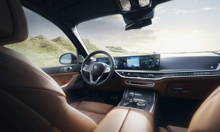 Utasterébe a BMW új irányvonala költözött, tehát eltűntek a műszerfalról a gombok, helyettük a digitális óracsoporttal egy hajlított kijelzőt alkotó 14,9 colos központi érintőképernyő van a szellőzők felett. A váltókar kristályüvegből készült, ahogyan az iDrive tekerője is.
