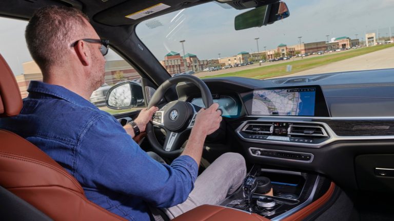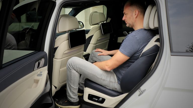 Az X7-est felpakolták az összes létező extrával, ami a biztonságos közlekedéshez kell: az önvezető funkció autópályázásra jó, de arra nem, hogy hátra szaladj a harmadik üléssorhoz az M7-esen. A rendszer dugóba érve képes átváltani araszoló üzemmódra is, ilyenkor a forgalom ritmusával együtt élve álló helyzetre fékez és onnan magától indul, ha a sor is megindul előttünk. A sávokat is ügyesen tartja, de mindvégig igényli, hogy a vezető fogja a kormányt és szükség esetén belenyúljon, mert ki tudja, mit okoz, ha két ellenséges német autó szoftvere találkozik, és nem tudják eldönteni, melyik rántsa félre hamarabb a kormányt.