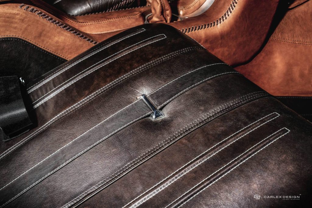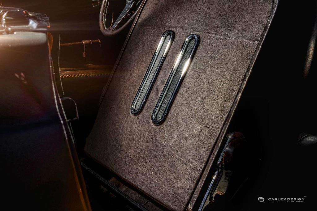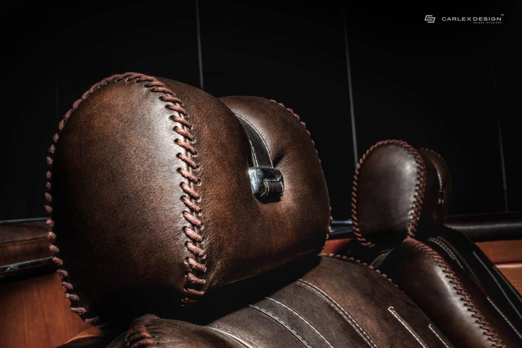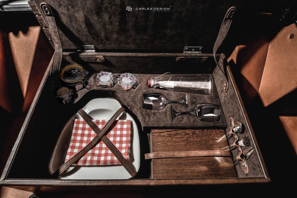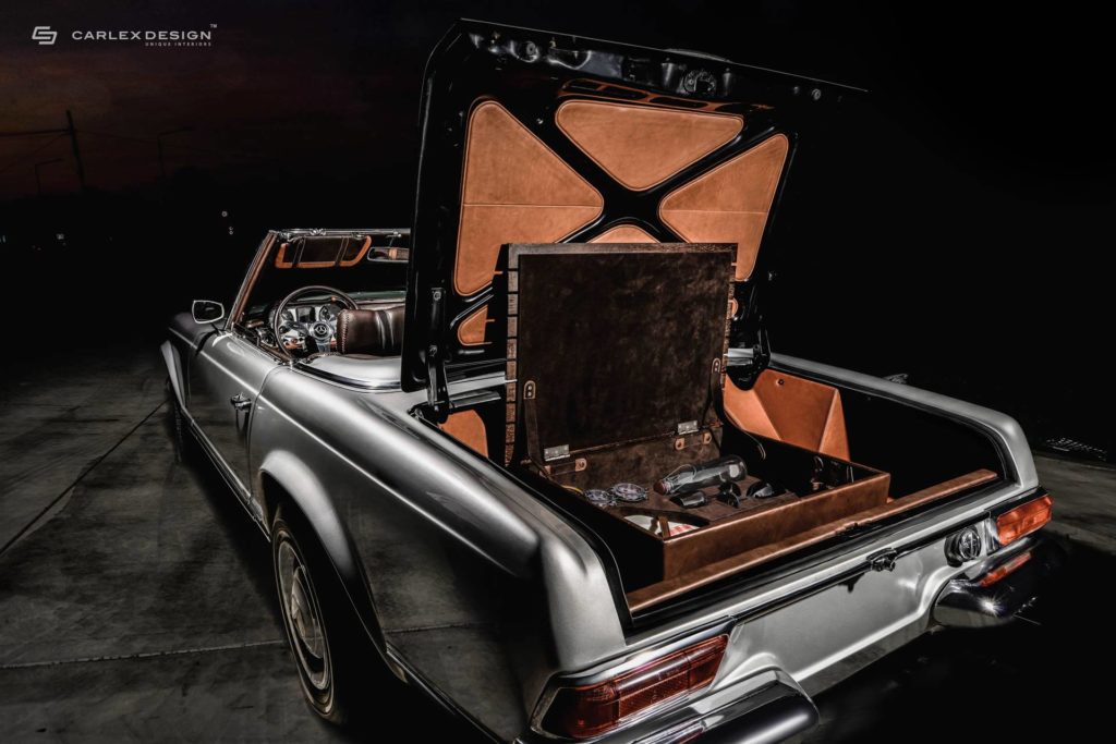 A lenyűgöző autóbelsőiről ismert lengyel Carlex Design készítette a 230 SL utasterét, aminek a legapróbb részletét is sötétebb és világosabb barna bőrrel vonták be. Retró stílusúak a varrások, az eredeti megoldásokat pedig szabadon gondolták át. A kapaszkodók helyére bőrfogantyúk, a térképzsebek helyett bőrtáskák kerültek az ajtókra, és ott vannak az ülések mögötti utazóládák is, a csomagtérbe piknikkészletet képzeltek el.
