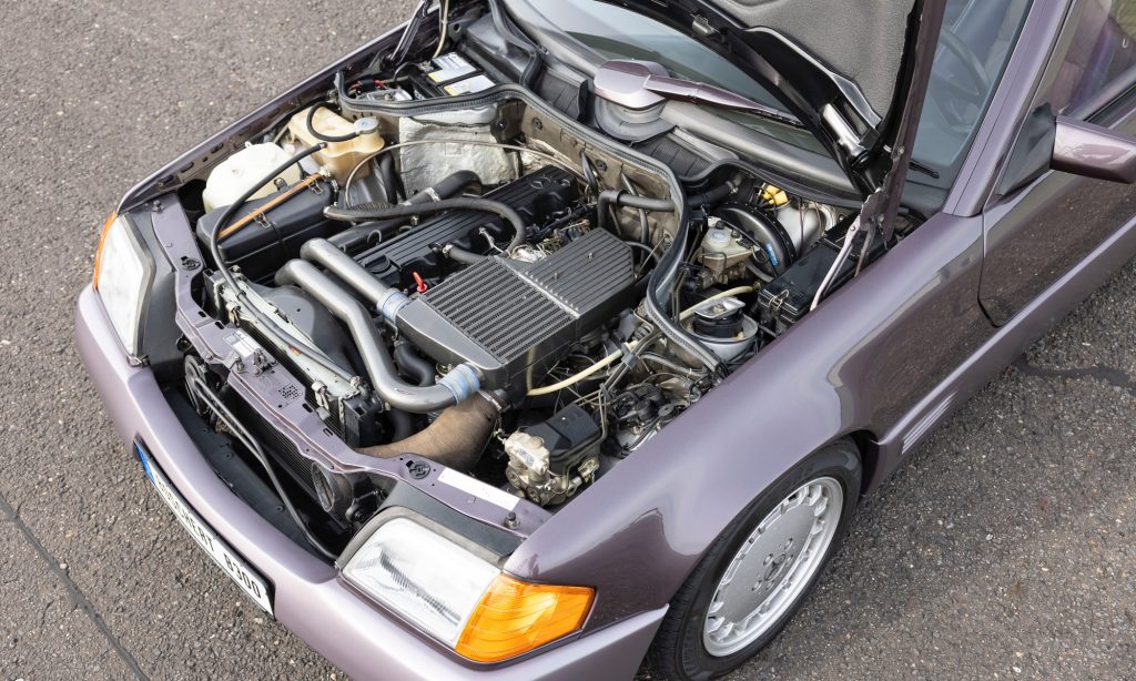 Különleges megoldásai nem értek véget a múltidézésnél, a motorháztető alatt sem a szokványos Mercedes M103-as sorhatos van, hanem szekvenciális turbófeltöltőt akasztottak rá. A korábbi 190 helyett így már alulról karcolja a 300 lóerőt, de hagyományos ajtóval épült ennél kicsit izmosabb gép is.