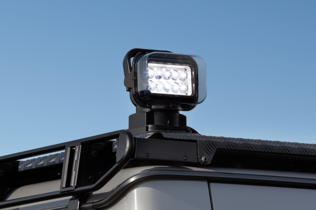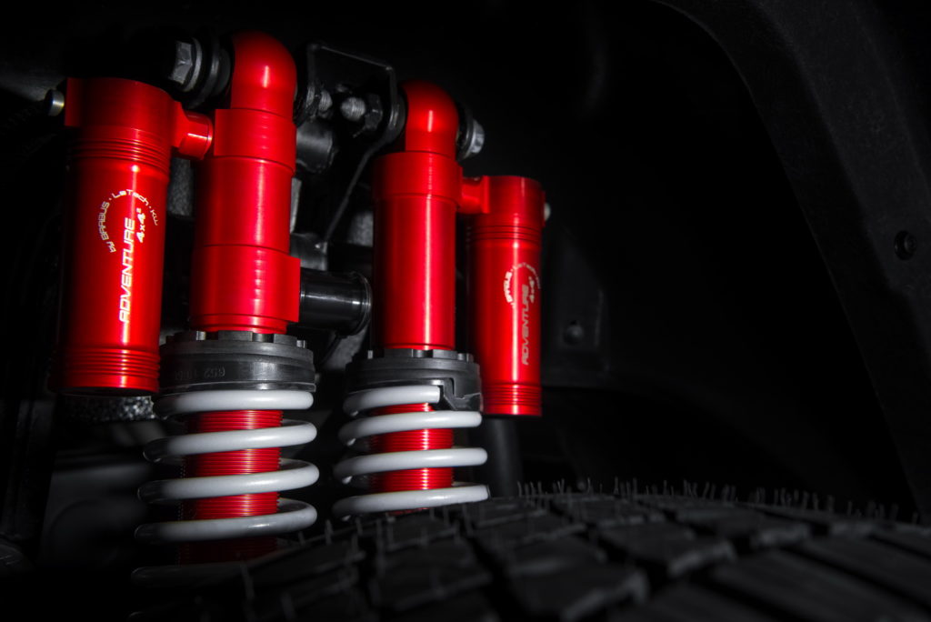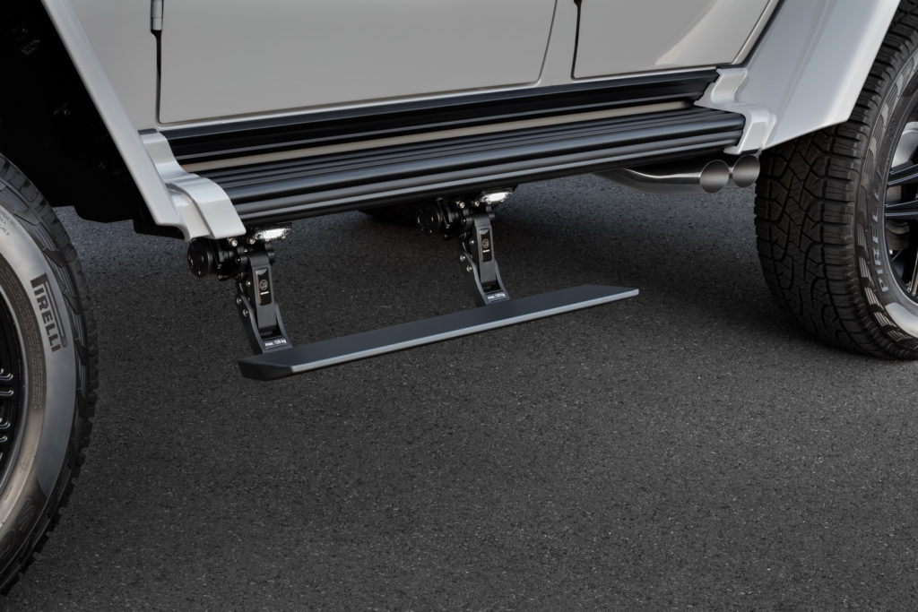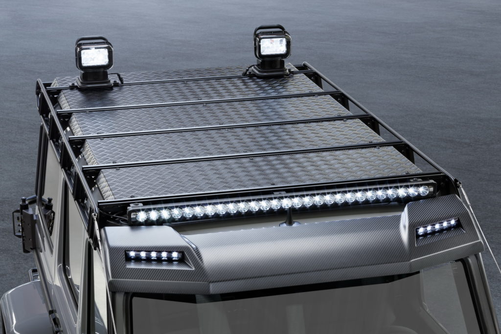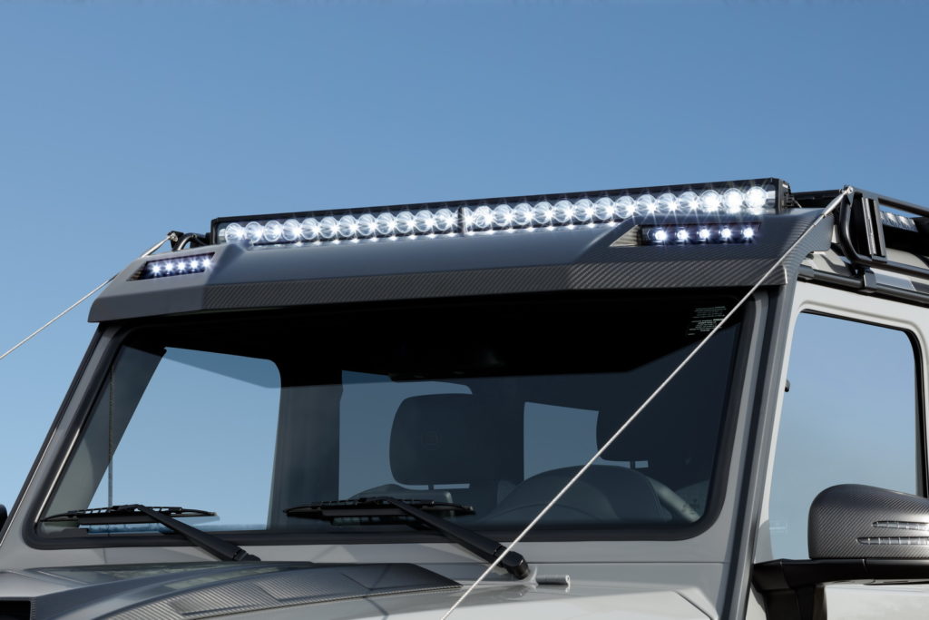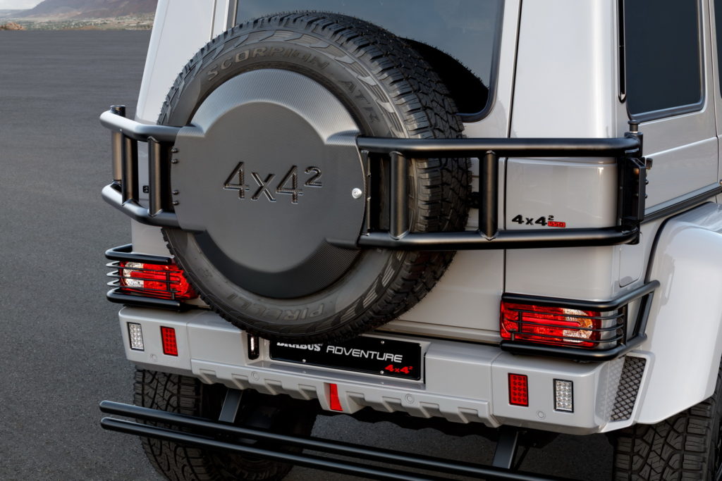 De tény, hogy a Brabus 550 Adventure 4x4² még nagyobb hasmagasságú, alsó védőlemezt, gallytörőt, csörlőt, kiegészítő fényszórókat, lámavédőt, felhajtható fellépőt, elektromosan állítható futóművet és megszámolhatatlan egyéb extrát kapott.