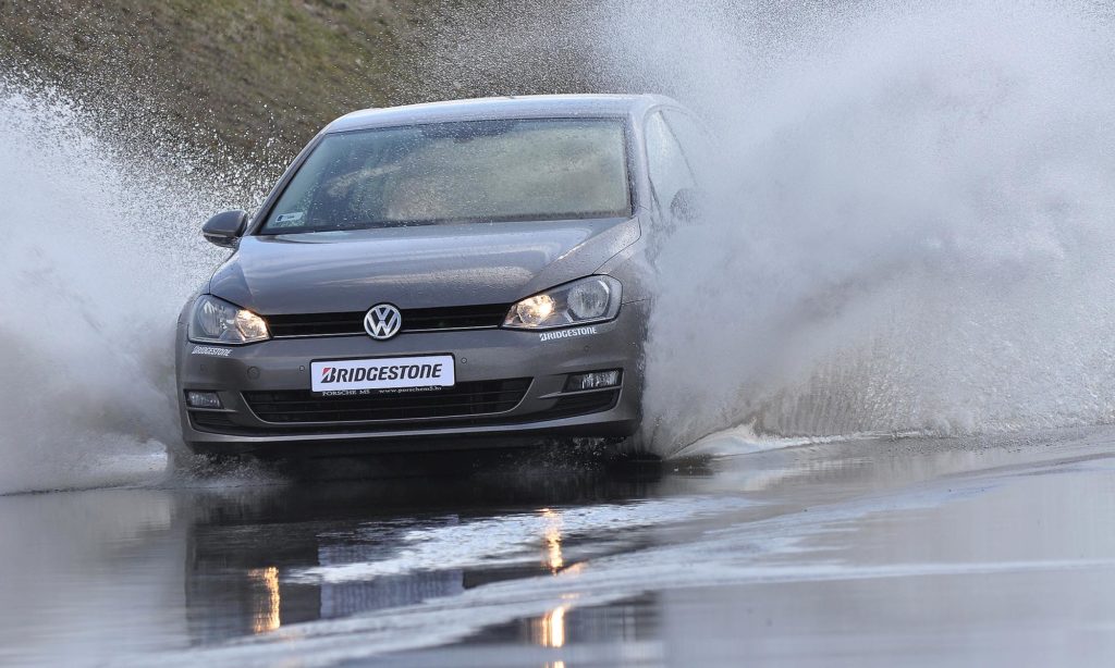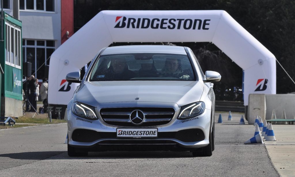 Mivel nem volt összehasonlítási alap sem az elődjével, sem a konkurensekkel, ezért erről csak annyit mondunk, hogy akár a 70 km/óráról száraz úton intenzív fékezésnél, akár a 70 km/óránál vízre futás (aquaplaning) jelenségénél, akár az 50 km/óránál vizes aszfalton vészhelyzeti kikerülésnél tapadtak a gumik, ahogyan csak bírtak, mind a hetes Golfon, mind az új E-osztályon.