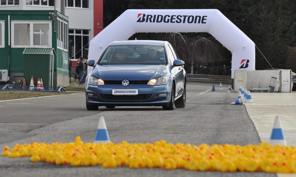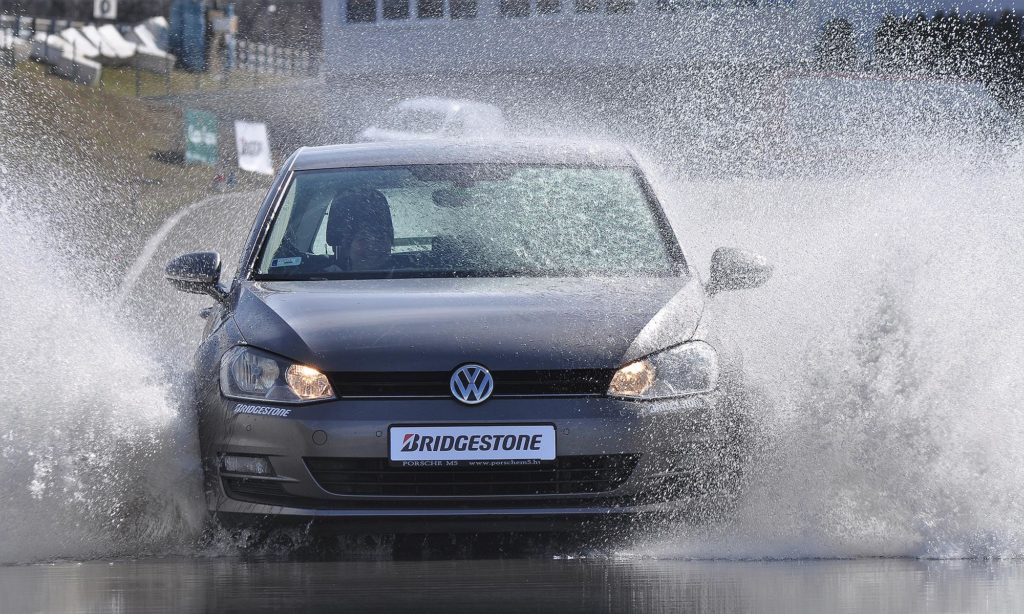 A másik, szubjektív vélemény a miénk lehetett, amikor a Hungaroringen lévő tanpályán megoldhattunk néhány feladatot a Turanza T005-tel szerelt autókkal.