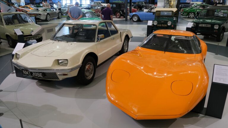 A British Motor Museum szexepiljét az eleve excentrikus brit autóipar legnagyobb tévedései, hibái, balfogásai adják.