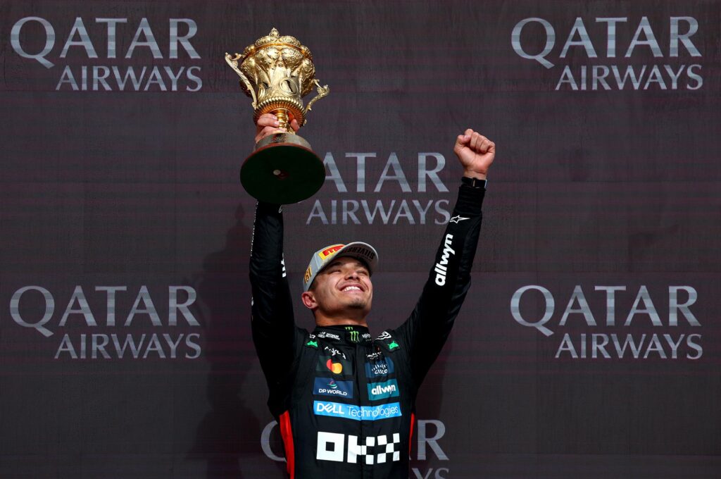 Lando Norris a hazai közönsége előtt elsőként haladt át a kockás zászló alatt,