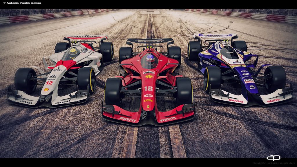 Antonio Paglia brutális autókat vizionált 2025-re, a futurisztikus formákat retrós festéssel vitte át a Ferrari, a McLaren és a Williams jövő autóira: