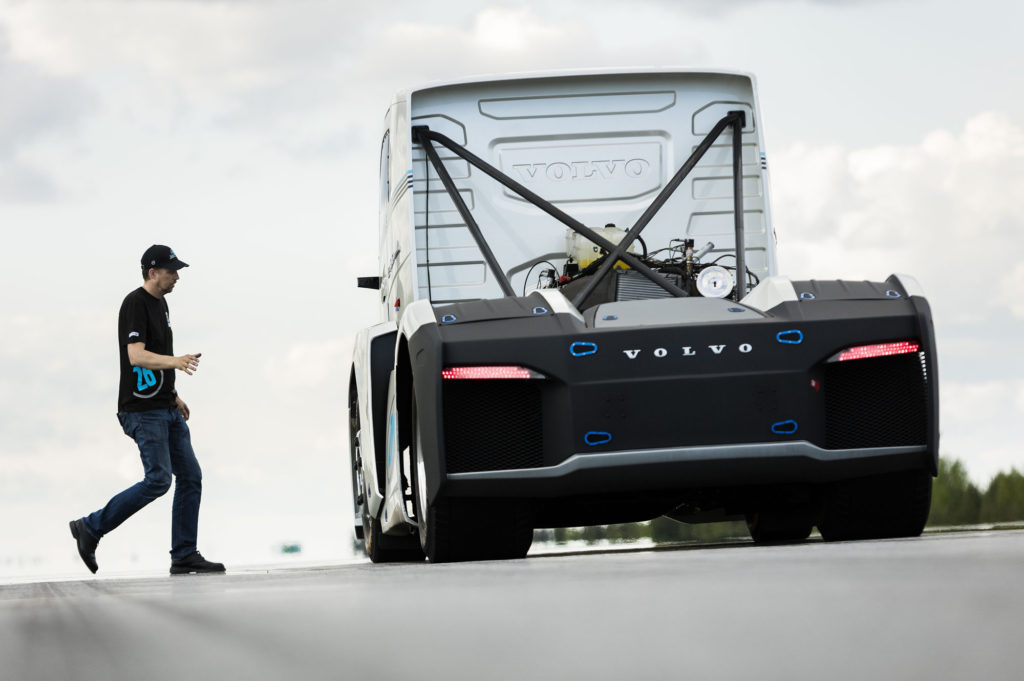 Szükség is van a lehengerlő erőre, a Volvo ugyanis gyorsulási rekorddöntésre építi ezt a kamiont, amelyet áramvonalas üvegszálas fülkével szereltek fel. 500 és 1000 méteres távon készülnek a rekord megdöntésére, ahol egy korábbi, 1600 lóerős kamionjukkal egy kilométeren 160 km/órára gyorsultak fel. A kísérletre most egy előzetessel keltik fel a figyelmet, az eredményt egy héten belül jelentik be.