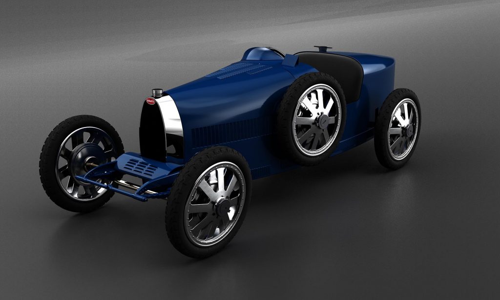 és nemcsak gyerekek vezethetik, hanem akár felnőttek is beleférnek. A formája az 1924-es lyoni francia nagydíjon induló Type 35 pontos másolata, de az építése során már modern technikákat is alkalmaztak. A kézzel összeszerelt gyerekautó alkatrészei 3D nyomtatással készültek, modern fényszóró (ez a képeken nincs rajta), erősebb fékek és naprakész elektromos hajtás került bele.