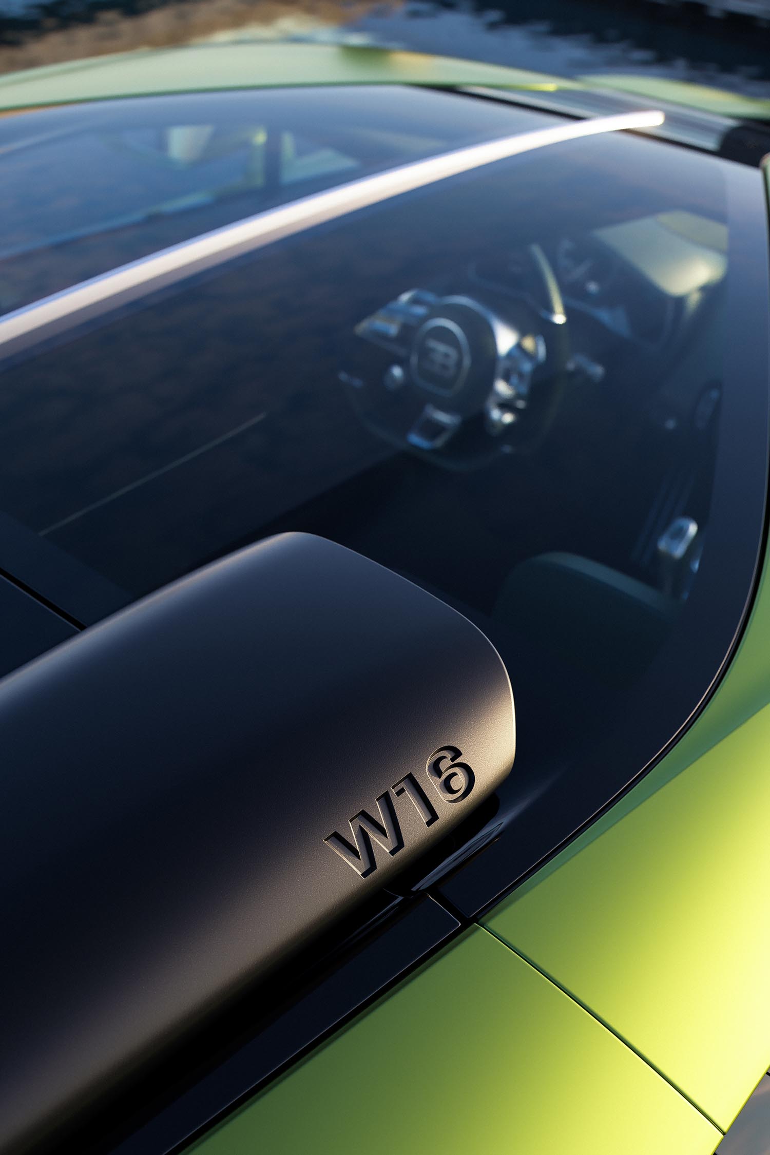 A motorján kívül a dizájnja is a Mistralt idézi, a fényszórók és a hátsó lámpák megegyeznek vele, mintha csak annak a csukott tetős változata lenne. A hátsó szárnyat pedig a Chiron Profilée változatáról vette elő a Bugatti.