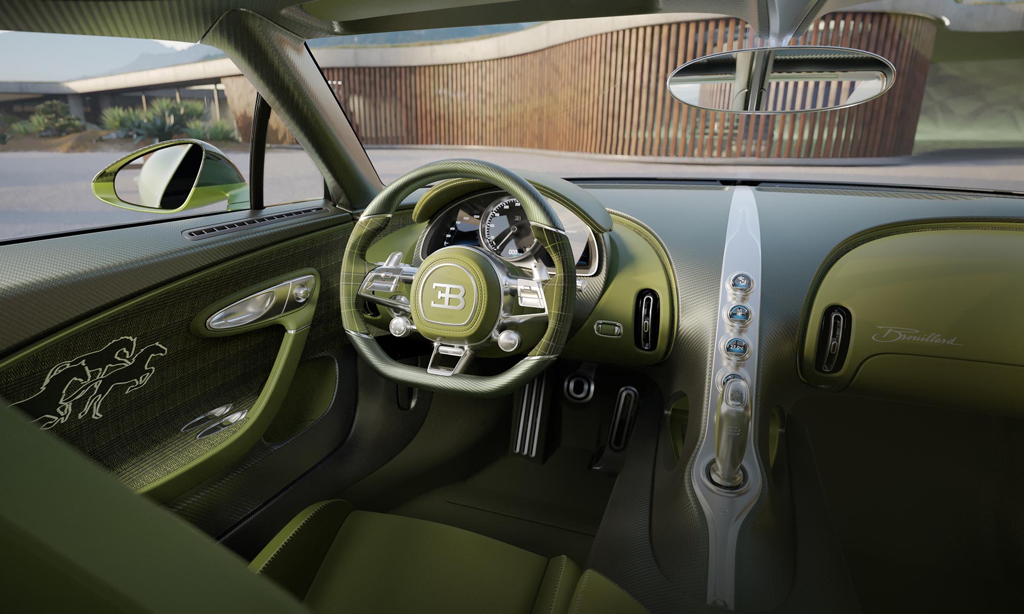 A szuperautó ennek megfelelően tele van lovas utalásokkal, a különleges kárpitozású belső terét lovas mintákkal díszítették, az egy darab alumíniumból készített váltókarban pedig egy üvegbetét található, amiben egy lófejszobrot helyeztek el. Még érdekesebb a Brouillard technikája, ugyanis a márka legendás W16-os motorja került bele.