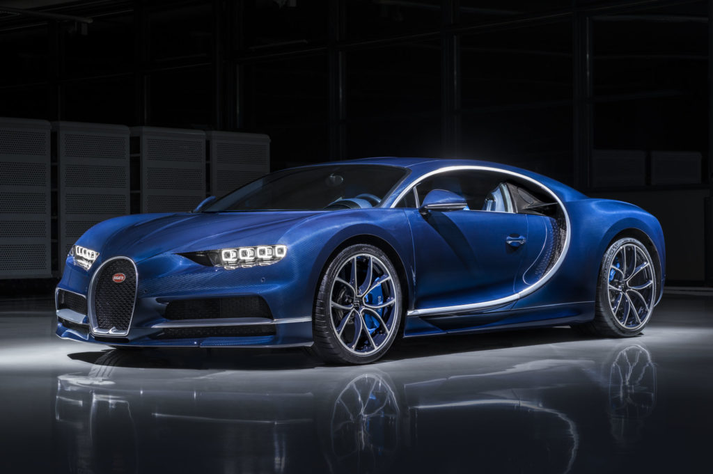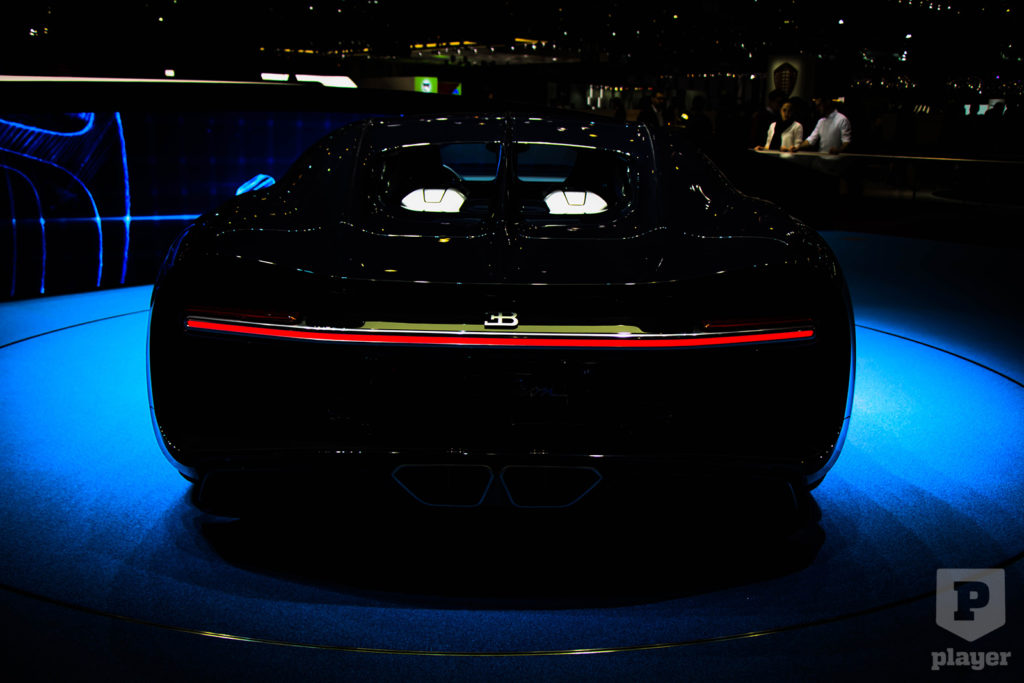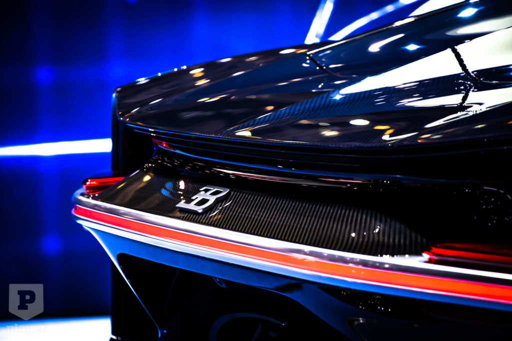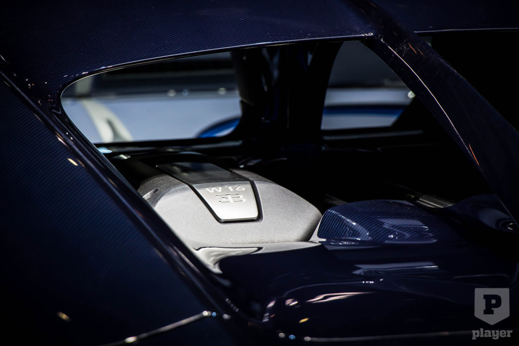 Genfben pedig ismét ott volt a Chiron, méghozzá egy eddig nem látott színben. Sötétkék, persze, de nem akármilyen, hiszen ha közelebbről megnézed, akkor láthatod, hogy a fényezés alatt látszik a szénszálas anyag szerkezete. Nyolc ilyen szín közül választhatsz: fekete, szürke, türkiz, kék, zöld, barna, vörös és ez a Bleu Royal „karbon fényezés” érhető el.