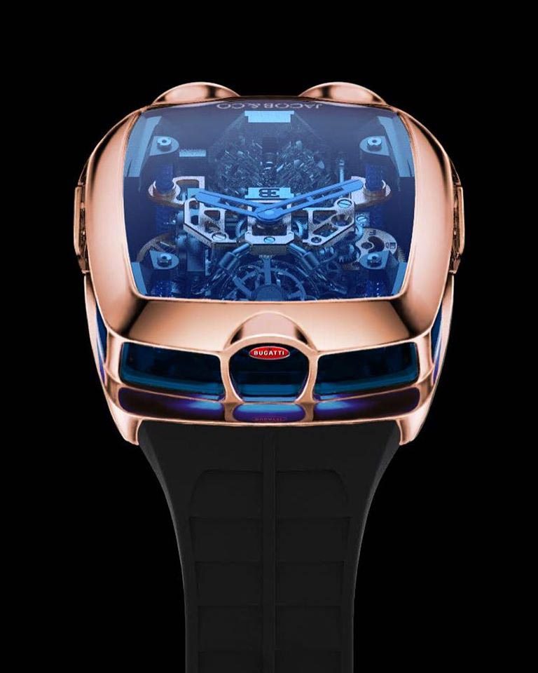 A Jacob & Co. karórája pedig a legapróbb részletig személyre szabható, a motort tartó négy rugó színét is meg lehet választani.