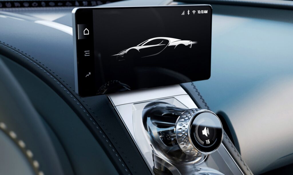 Lebegő középkonzol és tetőre futó hangulatvilágítás választja el egymástól a kétszemélyes kabin két utasát a Tourbillonban. A középkonzol egyetlen tömbből mart alumíniumból és rendkívül tiszta kristályüvegből készül, a tetején pedig egy telefonos kapcsolatra képes és tolatókamera képét is megjelenítő, nagy felbontású központi képernyő bukkan elő, amikor szükség van rá.