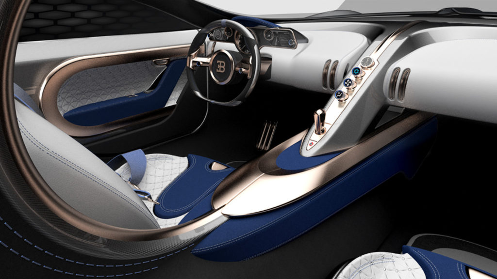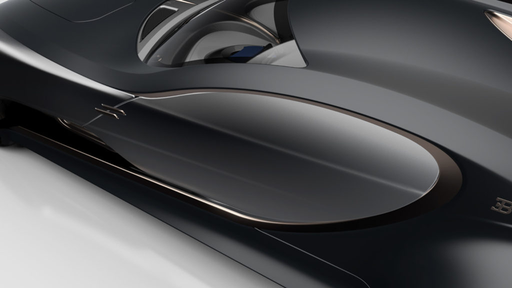 Szemből mintha egy Chiron lenne, de a hosszan elnyújtott motorházfedél nem középmotoros, összkerekes sportkocsit, hanem elegáns, hátul hajtó túrakocsit sejtet. A legendás Type 57 tiszteletére Type 57 T Concept névre keresztelt koncepció ezzel egy másik hasonló tanulmányautó, a Mercedes-Maybach 6 konkurense lehetne.