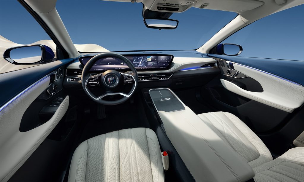 Két külön képernyő helyett egyetlen széles kijelző mutatja a vezetéshez legfontosabb adatokat és a szórakoztatórendszer menüjét. A Buick Virtual Cockpit ívelt 6K képernyőjét a Qualcomm Snapdragon 8155 chip szolgálja ki, és felhőn keresztül frissül. Utasterének hangulatvilágítása több színben állítható, de akár a zenére reagálva is játszhat a fényekkel. 2905 mm-es tengelytávja tágas belteret ígér, melyet lebegő középkonzollal és prémium anyaghasználattal tesznek kellemesebbé.