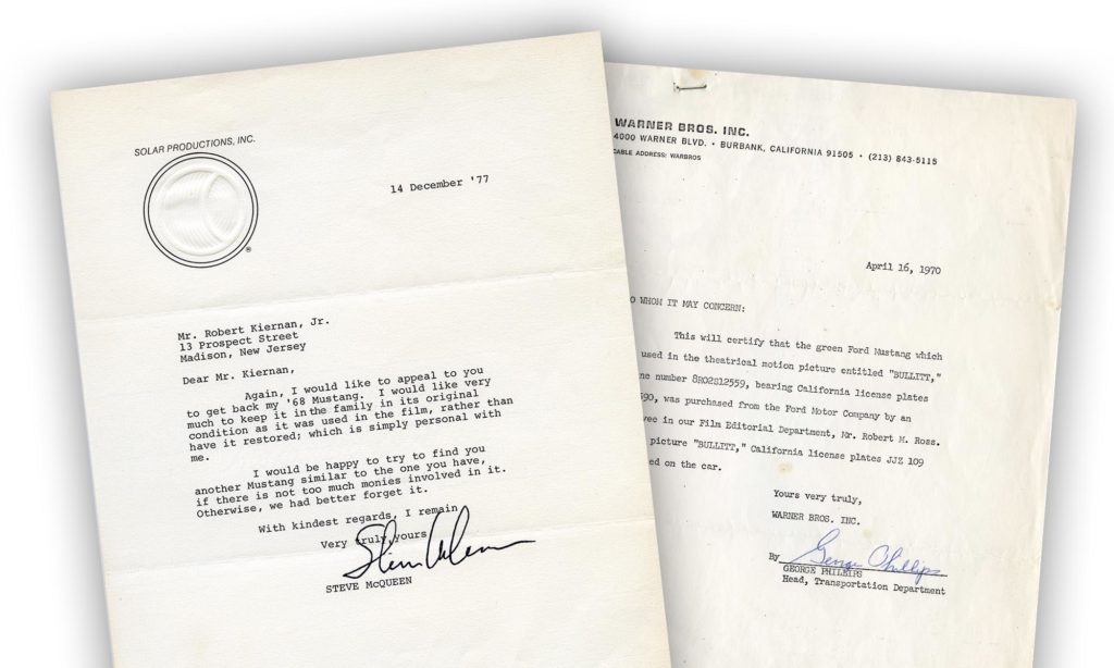 Steve McQueen azonban időközben rájött, hogy kár volt elengednie a Mustangot, és többször is megpróbálta visszaszerezni. Az egyik ilyen levél, amit Kiernannek írt 1977-ben, még ma is megvan, és nem csodáljuk, hogy nem jött létre az üzlet, McQueen ugyanis nem túl szerencsés módon próbált meg hozzájutni az autóhoz, amit a filmvásznon vezetett. Mint írja,