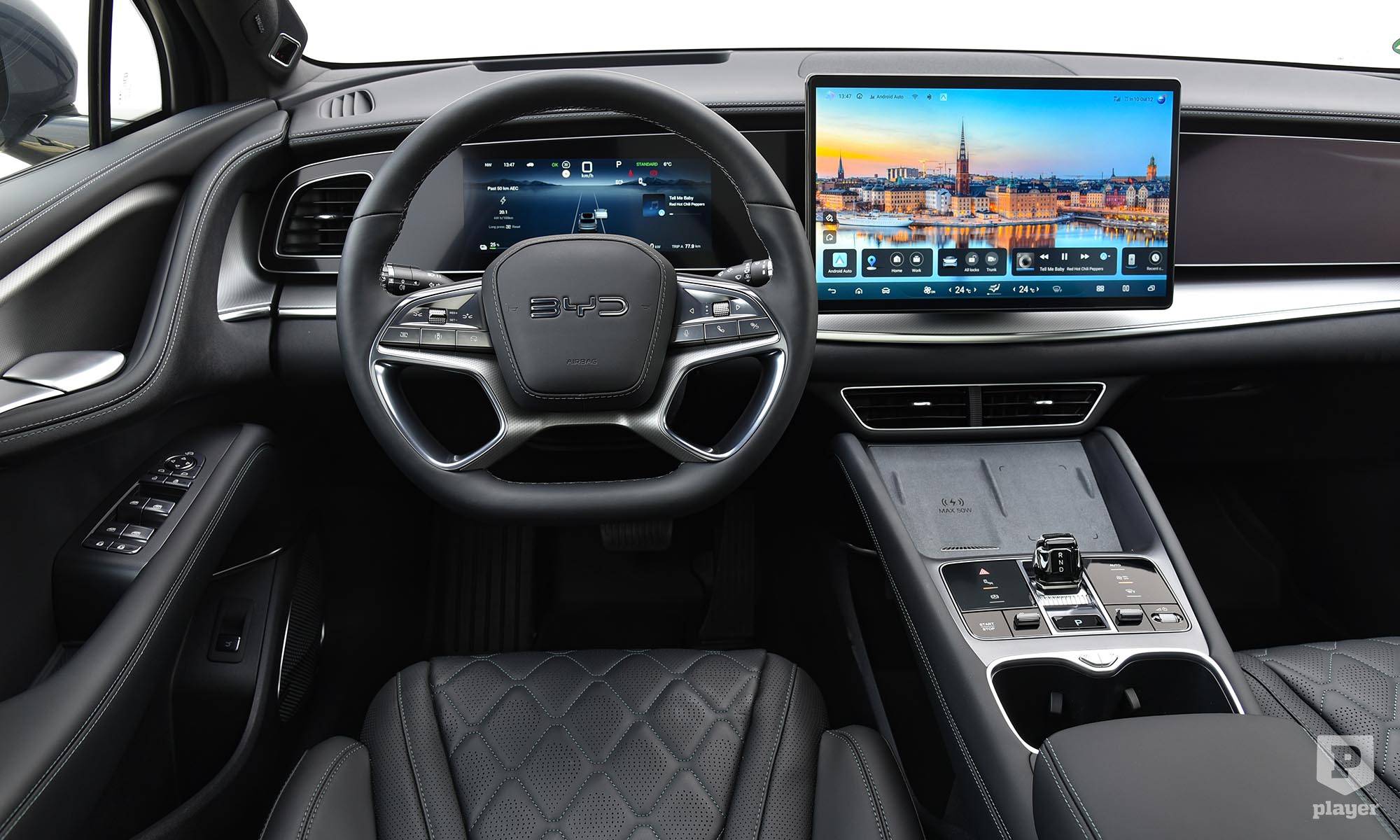 Egy formás kupé és magas építésű crossover keveréke, ami kifejezetten kellemes a szemnek. A BYD-nél az újabb modellek az óceán-sorozatba tartoznak, ezek közös jellemzője, hogy a víz hullámzását, dinamikáját figyelhetjük meg az autó különböző pontjain. Ha ez nincs is meg, ne ess kétségbe, de az minden bizonnyal feltűnik, hogy a Sealion 7 látványa kellemes bizsergéssel tölt el. Csinos, 1,6 méter magas és 4,8 méter hosszú karosszériáját jó érzés minden irányból megszemlélni. Aztán beülve tovább tart az élmény. Sokkal autószerűbb a Sealion 7, mint például a Tesla. Itt is a hatalmas képernyő köré rendeződik a beltér, de a változatos színek és formák élettel töltik meg a teret. Olyan autó ez, amiben élvezet megtenni minden egyes utat.