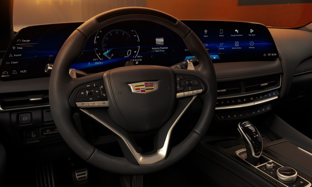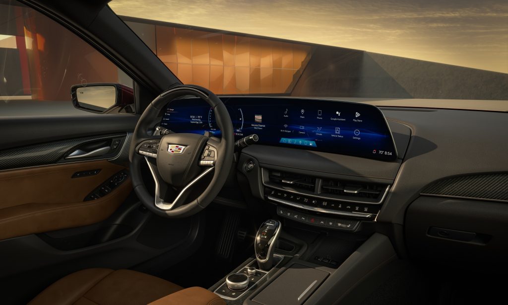 Minden CT5-ösbe a 33 hüvelykes kijelző kerül, amivel a műszercsoport és a központi érintőképernyő egy egységgé olvad. A rendszerben a Google különböző szolgáltatásai, mint az Assistant, a Maps és a Play elérhetően, valamint Android Autó és Apple CarPlay csatlakozási lehetőség. Opcionális a Cadillac folyamatosan tanuló, felhő alapú Super Cruise rendszere, mely szinte önállóan képes vezetni az autót.