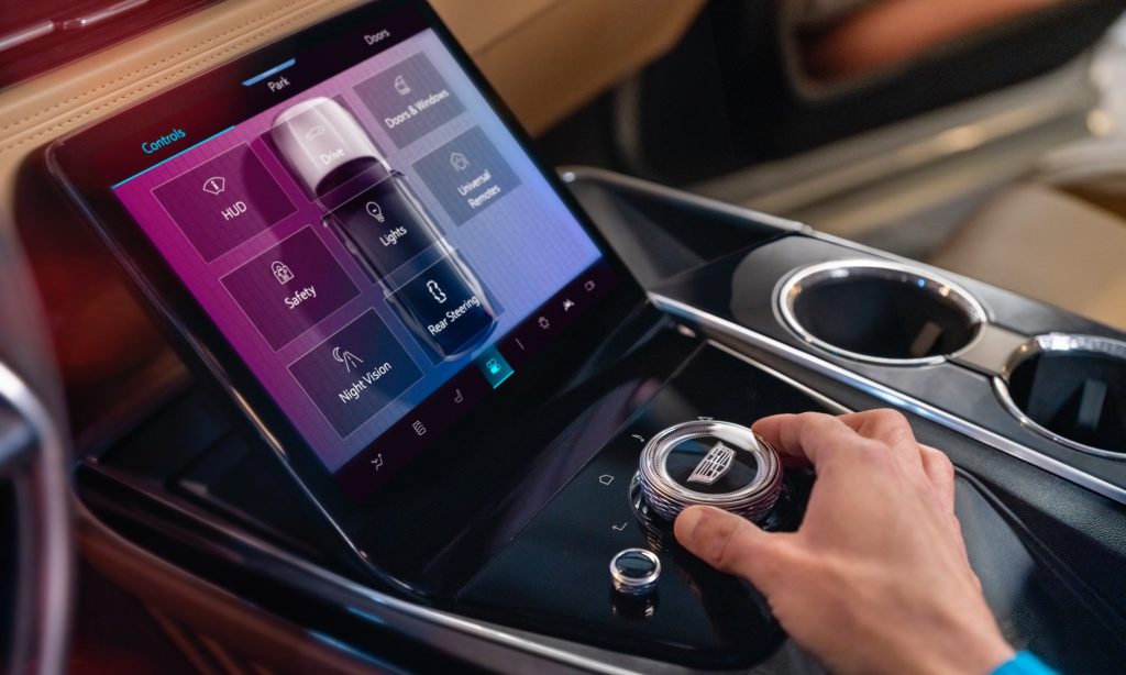 Faltól falig nyújtózkodik a műszerfal 55 colos kijelzője, melyen a digitális óracsoport és a fedélzeti rendszer jelenik meg. Az utas előtti kijelző speciális bevonata miatt a vezető szemszögéből nem látható, továbbá a hátsó két fotelen utazóknak is jut önálló szórakoztató rendszer 12,6 colos kijelzővel, vezeték nélküli töltővel és különböző csatlakozási módokkal. Az Escalade IQ rendelhető akár hétszemélyes változatban is, harmadik üléssorral.