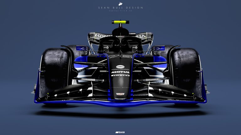 Az Alpine dizájnereként munkálkodó Sean Bull grafikuszseni pedig elképzelte (igaz, még jó egy hónappal a bejelentés előtt), milyen lenne a Cadillac F1-es autójának festése, ha már 2023-ban csatlakozna a mezőnyhöz – itt még az Andretti-partnerség nélküli versenygépet láthatjuk, elegáns lett: