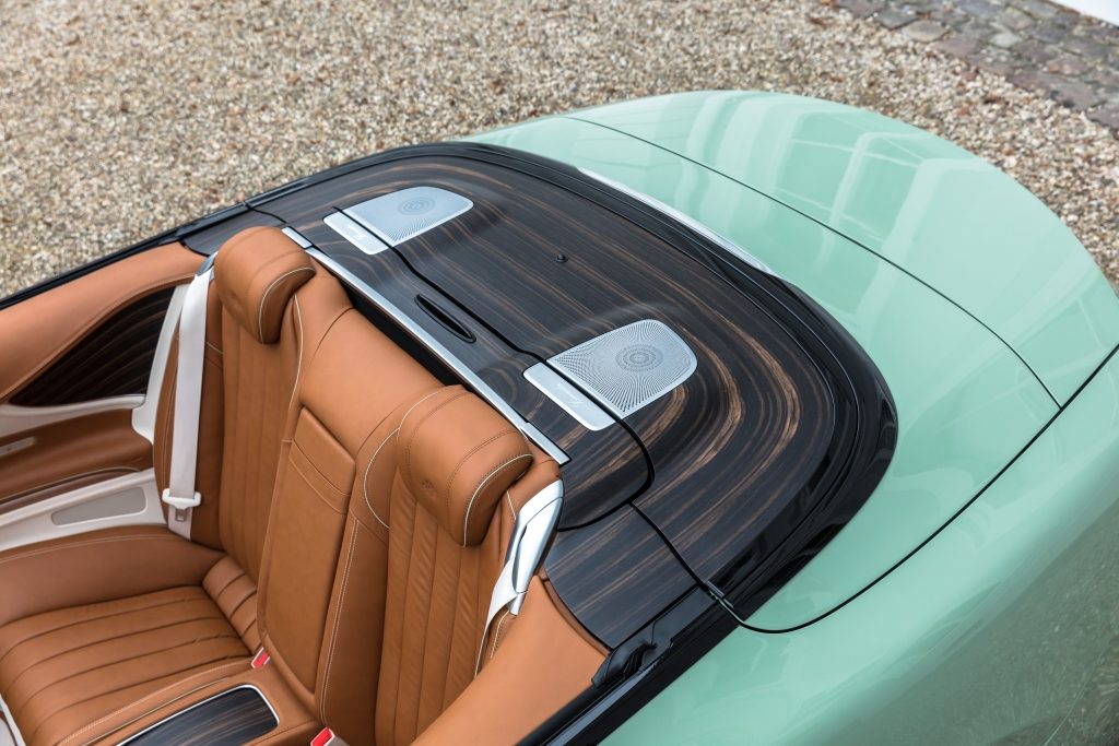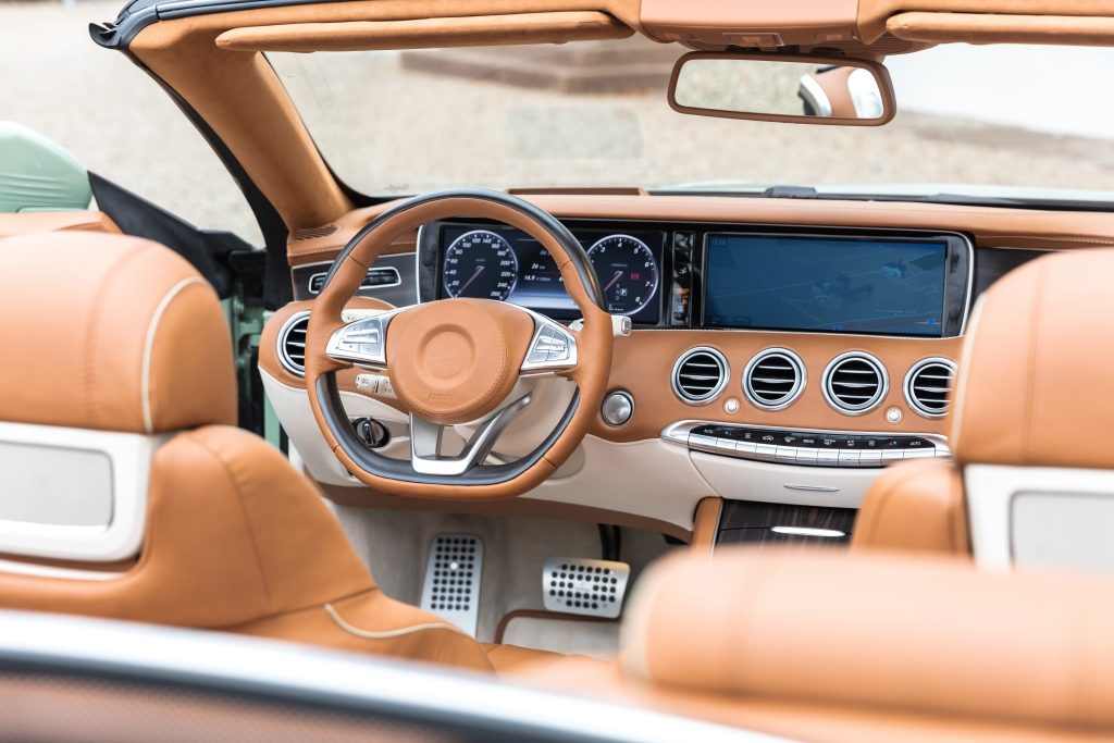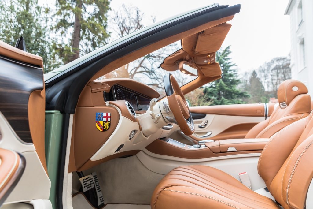 Belül is luxushangulatot áraszt a Carlsson kabriója, amit Diospyros névre kereszteltek. Nem egy fantázianévről van szó, az átalakított S-osztály Cabriolet arról az afrikai fafajtáról kapta a nevét, amit felhasználtak a fabetétekhez. A sötétbarna fa borítja a műszerfalat és a vászontető fedelére is ez került.