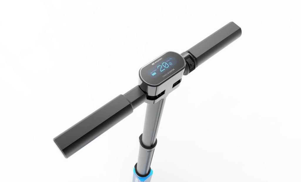 Kihajtva egy teljes értékű, elektromos roller, amit a fogantyún lévő gombbal gyorsíthatsz, és a hátsó keréknél fékezhetsz, mint minden hagyományos társát. A Hyundai még egy kis képernyőt is tett a rollerre, ahol az akkumulátor töltöttsége és a sebesség olvasható le.