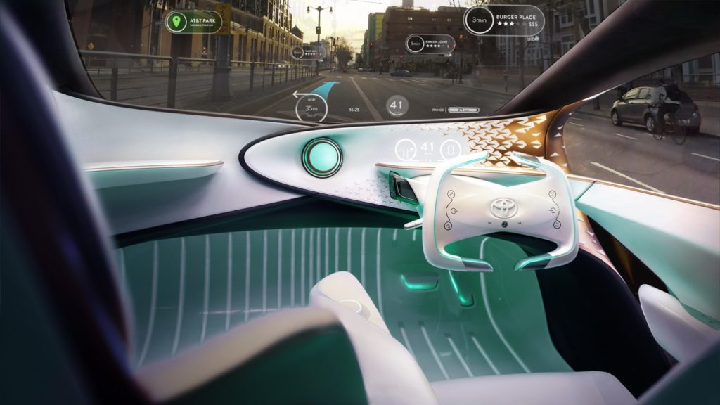 Egy kicsit jobban kidolgozta magát az autót a Toyota, amely Concept-i néven mutatta be tanulmányát. A formája alapján az Apple autójának is elmenne, és tele van high-tech megoldásokkal: például a fontos információkat a szélvédőre vetíti, hagyományos értelemben vett műszerfala nem is nagyon van.