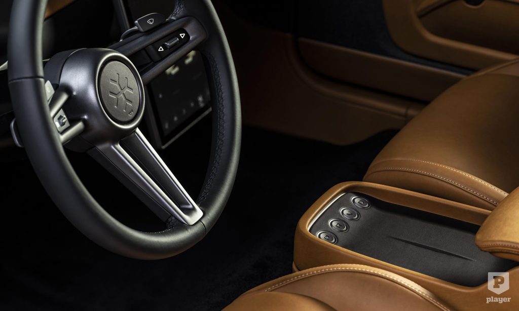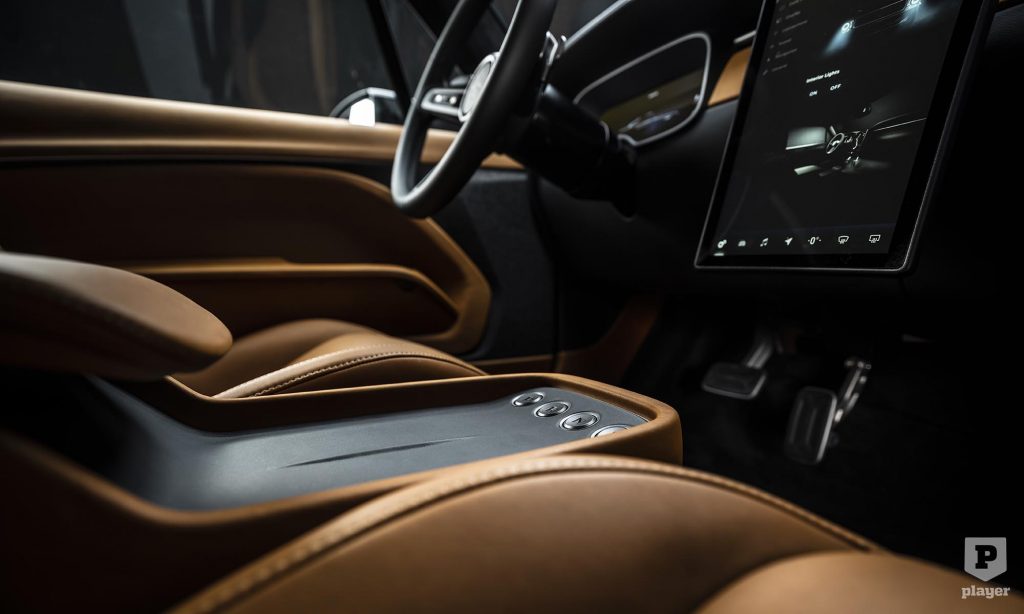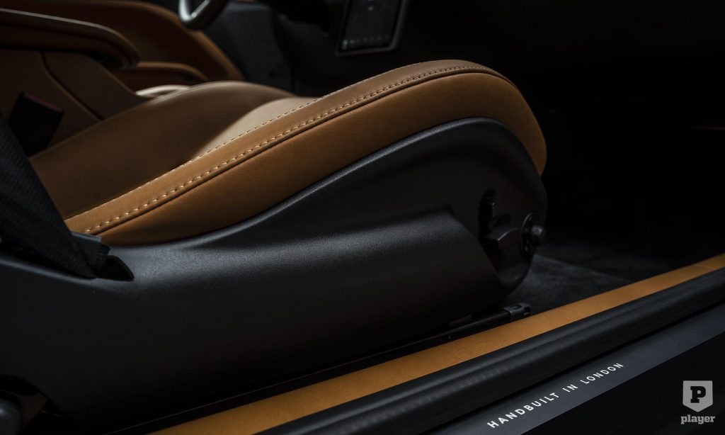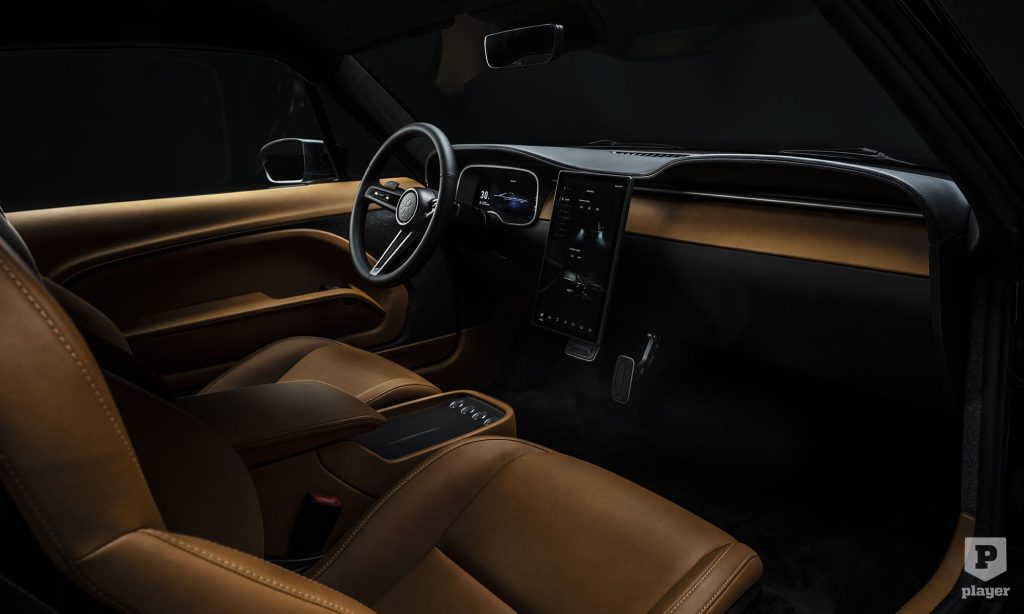 a digitális műszeregységet és az álló formátumú érintőképernyőt ugyanis olyan igényes bőrkötésbe csomagolták, ami megőrizte az eredeti Mustang hangulatát. A londoni cégnél természetesen kézzel szerelnek össze minden egyes példányt, ami garancia a minőségi kidolgozásra.