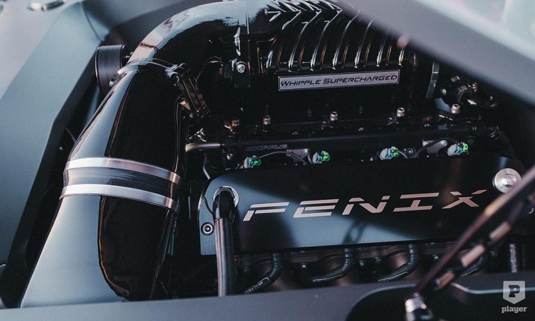 A pezsgőszínű karosszéria megtartotta a Camaro klasszikus vonalait, de a motorházfedél és a sárvédők hangsúlyos éleivel még különlegesebb lett. Az idomokat egészen kisimították, a fényszórókat és a hátsó lámpákat LED-esre cserélték, a Fenix végül az elöl 18, hátul 19 colos HKE kerekekkel kapott finoman modernizált külsőt.