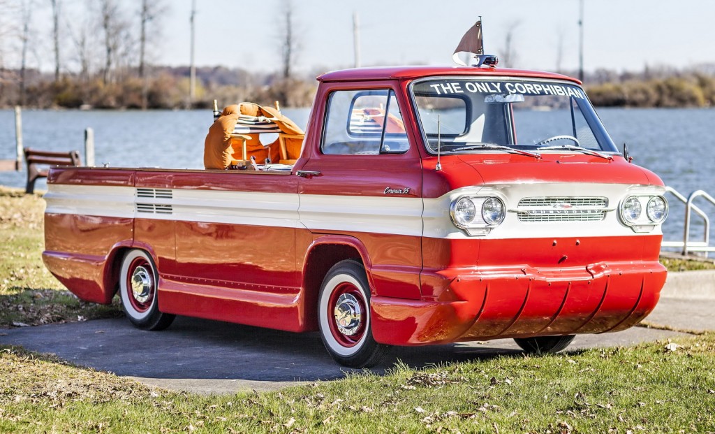 Az állatvilág kétéltűi jóval sikeresebbek az autóiparéinál, így viszont a kétéltű autók értékes árverési tárgyként is funkcionálhatnak. Az 1961-es, Chevrolet Corvair Rampside pickupon alapuló Corphibian is prototípus maradt, így igazán egyedi kocsi lehet azé, aki a Mecum árverésén lecsap rá.