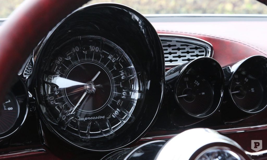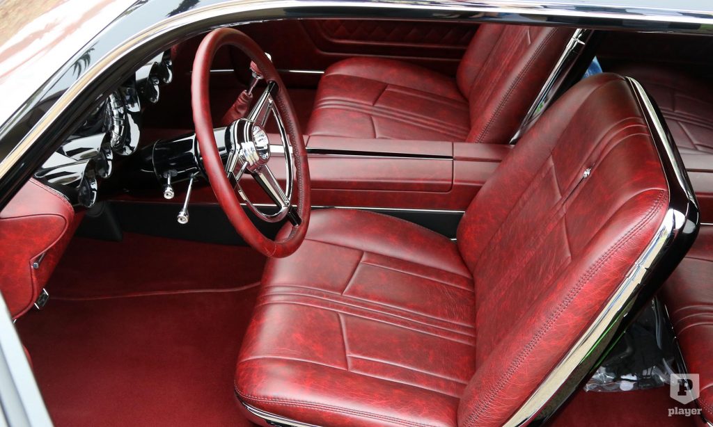 A meggypiros bőrrel bevont utastérben a típus rajongói kiszúrhatják, hogy a műszerfal egy ’60-as Impalából származik, az üléseket pedig egy ’59-es Cadillac Eldorado adta kölcsön. Az Impressive névre keresztelt egyedi Impala