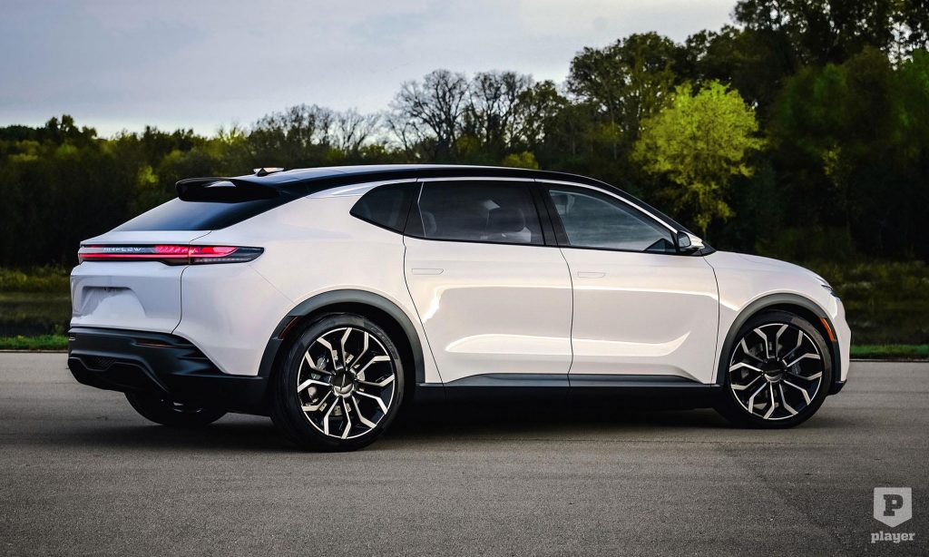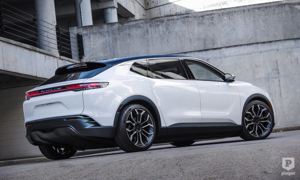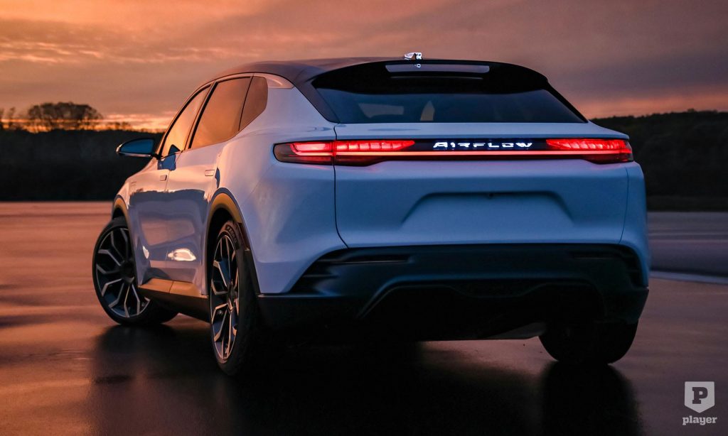 Az áramvonalas, ötajtós karosszéria letisztult stílusú, a 22 colos kerekeken egy egészen kicsit megemelt, de crossovernek talán még nem nevezhető. Szinte kötelező dizájnelem a hátsó fénycsík és a megvilágított embléma, amivel sokaknak tetsző elektromos autó lehetne az Airflow.