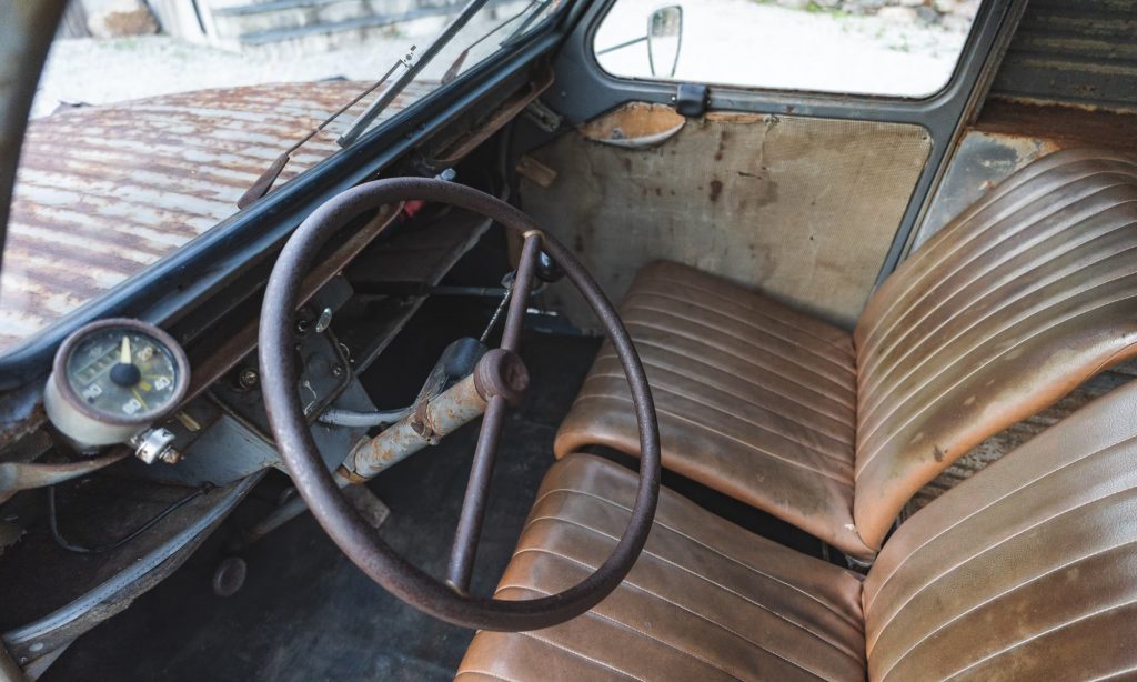 Ez az 1956-os autó azonban egy teherszállító, melynek egész karosszériája hullámlemezből van, hogy minél olcsóbb és könnyebb lehessen. Egészen 2006-ig állt egy pajtában, amikor felfedezték a patinás autót, melynek órája 9814 kilométert mutat ugyan, de ebben az esetben ez nem garantálható.