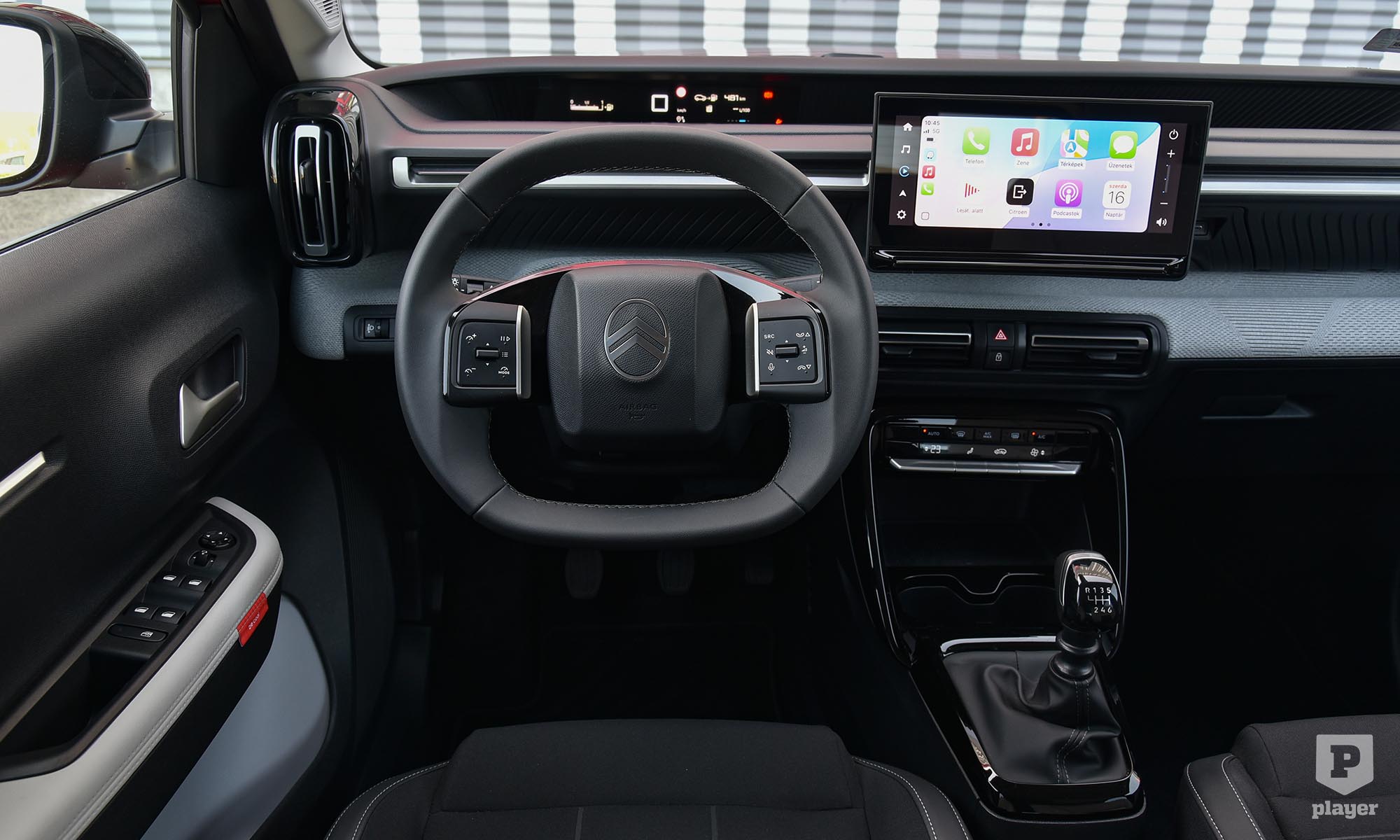 Szokás szerint a tesztautó jól felszerelt példány volt, a You, Plus és Max hierarchiában csak a két felsőbb szinthez jár eltérő színű tető, a legdrágább, 250 ezer forintos elixírvörös metálfényezéshez remekül illik a fekete tető, bár sem a kosz, sem a felmelegedés szempontjából nem ideális. Az alapszín egyébként jó stellantisos szokás szerint egy igazi szín, ami a C3-asnál a Monte-Carlónak nevezett világoskék, annak a nem alapváltozatához fehér tető jár.