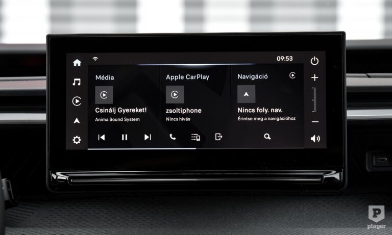 Örvendetes, hogy van külön klímavezérlőpanel, cserébe a hangerőt – a kormányon lévő gombokon kívül – csak a képernyő jobb oldalán állíthatjuk, én biztos egy tekerőre szavaztam volna a Color Clipek helyett, de hát nem kérdezett meg senki.