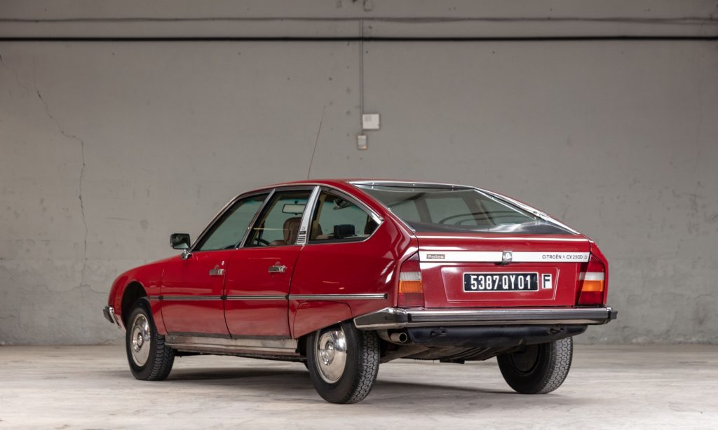 1979 áprilisában rendelték ezt a bordó színű Citroën CX dízelt, melyet igazán kellemes utazóautóvá tesz a bézs utastér. Dokumentációi szerint a motorját 38 326 km-nél cserélték, ennek költségét 75 százalékban állta a gyártó. Egészen a turbódízel CX megjelenéséig (195 km/óra) ez volt a leggyorsabb dízel limuzin.