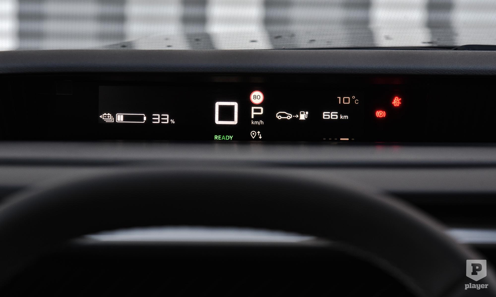 Az esőérzékelős ablaktörlő két fokozata a ki és a be, ha az érzékenységével elégedetlenek vagyunk, marad a hagyományos szakaszos működés. Megoldhatatlan, hogy álló helyzetben este csak a helyzetjelzők égjenek, vagy a tompított, vagy semmi. A motorfék – és így a visszatöltés – gyenge, de legfeljebb tovább gyengíteni lehet a menetválasztó C gombjával. Külön gombbal lehet kikapcsolni a 30-as táblát időnként 80-asnak érzékelő táblafigyelést, de akármilyen hosszan nyomjuk, mindig csipog egyet az autó, ha lát egy sebességkorlátozó táblát. A kombinált WLTP-hatótáv 303-307 kilométer, a városi 432-441, a valóság normális vezetési stílussal városi-elővárosi használattal kb. 180 kilométer, autópályán a Budapest–Győr távolságon is izgulnék egy kicsit.