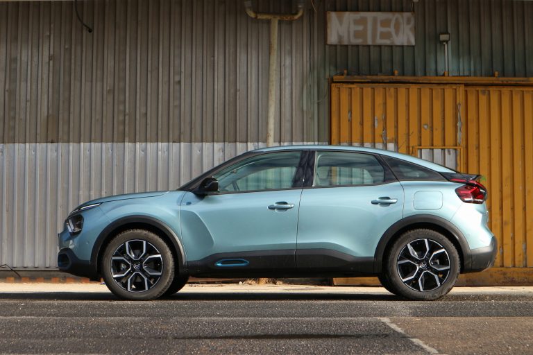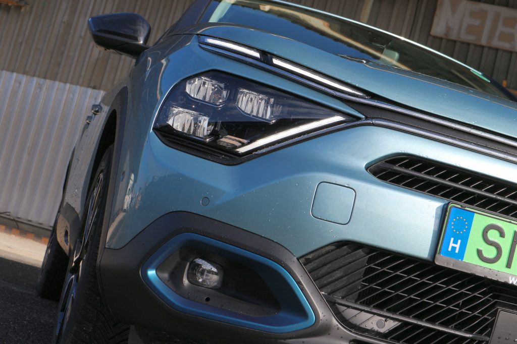 Most viszont itt az elektromos C4, pontosabban az ë-C4, ahogy a márka sajátságos humorral elnevezte az autót. Ez már bizony száz százalékig Citroën és száz százalékig villanyautó, még akkor is, ha tudjuk, hogy a műszaki alapokat, a motort, az akkut temérdek más Stellantis-modellben is láttuk már. Illetve akkor is, ha tudjuk, hogy a C4-nek van benzines és dízel változata is. Hiszen ez a kocsi eleve villanyautónak is készült, a dizájn pedig kívül-belül egyaránt kizárólag és egyértelműen a Citroën legsajátabb műve.